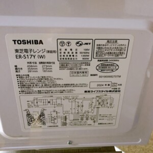 今回は東京都稲城市にお住まいの30代女性より、東芝 電子レンジ ER-S17Y(2024年製)を出張買取にてご依頼いただきました。