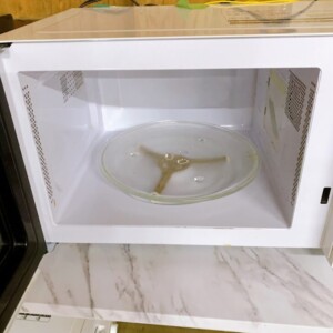 拝見した電子レンジは、外観に日常使用に伴う細かな汚れや軽微な擦れが見られ、庫内には食品加熱による汚れの付着や使用感が確認できました。ターンテーブルや動作自体には問題はなく、温め機能・解凍機能ともに正常に作動する状態でした。家庭用レンジとしては一般的な使用感の範囲内であり、まだ十分に使用できるコンディションでした。