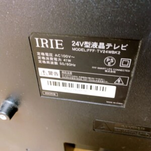 東京都足立区へ出張買取 IRIE FFF-TV24WBK2 2023年製 24V型液晶テレビ 美品のため高価査定