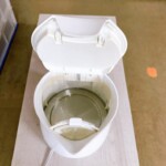 本体外観は目立つ傷や変色がなく、全体的に清潔感のある状態でした。一方で内部の底面や側面には長期間の使用による水垢や加熱跡が目立つ状態が確認されました。通電および沸騰動作の確認では問題なく、電源オフ機能やフタのロック機構も正常に作動しており、日常使用は可能な状態でした。