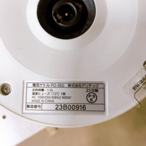 東京都世田谷区へ電気ケトル買取 ドリテック PO-360 2023年製 内部汚れありの状態を査定しました