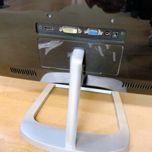 お引き取りしたモニターは27インチの大画面モデルで、液晶パネルに割れや表示不良はなく、映像表示は安定している状態でした。画面表面には拭き跡や軽微な使用感が見受けられましたが、視認性に影響はありません。背面やスタンド部分にも日常使用に伴う細かな擦れが見られる程度で、全体として実用性の高いコンディションでした。入力端子(HDMI・DVI・D-Sub)も揃っており、幅広い機器と接続できる点も確認できました。