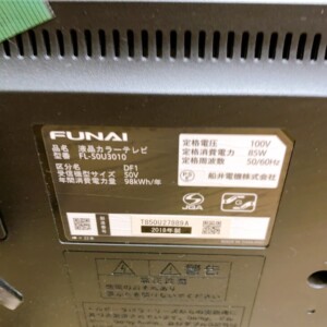 今回は調布市にお住まいの30代女性(会社員・単身世帯・賃貸マンション)より、FUNAI FL-50U3010(2018年製)を出張買取にてご依頼いただきました。
