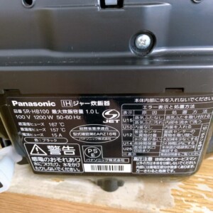 東京都小平市にてPanasonic SR-HB100 IHジャー炊飯器を出張買取|内釜良好・動作正常のため適正査定しました
