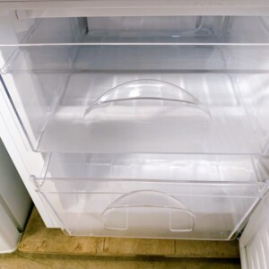 お預かりした冷凍冷蔵庫は、外装に目立つキズやヘコミは見られず、全体的にきれいな状態でした。庫内も清掃が行き届いており、棚板やドアポケット、冷凍室の引き出しにも割れや欠けはなく清潔なコンディションが保たれていました。温度調節ダイヤルや庫内灯も正常に動作しており、日常使用に支障のない良好な状態です。