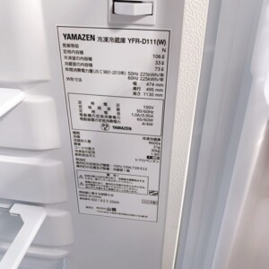 東京都八王子市でYAMAZEN 冷凍冷蔵庫 YFR-D111(W)を出張買取|庫内清潔で使用感が少ないため適正価格で査定しました