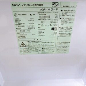 今回は武蔵野市にお住まいの30代男性・会社員(単身世帯・賃貸アパート)のお客様より、AQUA AQR-13J(2020年製・126L)を出張買取にてご依頼いただきました。