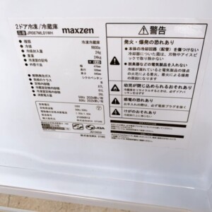 今回は港区高輪にお住まいの30代女性・会社員(単身世帯・賃貸マンション)のお客様より、maxzen 2ドア冷凍冷蔵庫 JR087ML01WH(2021年製)を出張買取にてご依頼いただきました。