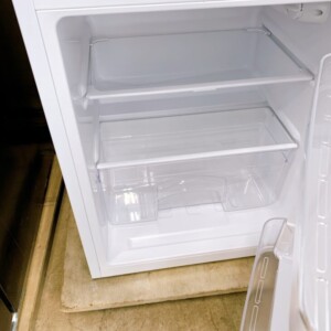 外装は目立つへこみや大きな傷はなく、軽微な擦れが見られる程度でした。庫内は使用感が少なく非常に清潔な状態で、棚板やドアポケットの割れもありません。冷却動作も正常で、冷凍室・冷蔵室ともにしっかり冷えることを確認しました。付属トレーも揃っており、再利用に適したコンディションです。