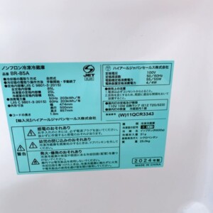 東京都八王子市へHaier BR-85A 冷凍冷蔵庫 庫内美品・2024年製のため適正価格で査定しました