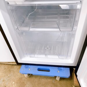 お引き取りした冷蔵庫は外装に軽微な擦れや小キズが見受けられましたが、大きなへこみや塗装剥がれはありませんでした。庫内は清掃が行き届いており、棚板・ドアポケット・野菜ケース・冷凍室引き出しも揃っている清潔感のある状態でした。冷却機能や温度調節も正常で、異音や過度な霜付きも確認されませんでした。