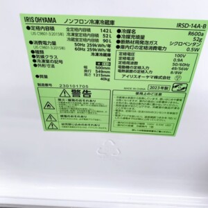今回は目黒区自由が丘にお住まいの30代女性・会社員の単身世帯のお客様より、アイリスオーヤマ ノンフロン冷凍冷蔵庫 IRSD-14A-B(2023年製)を出張買取にてご依頼いただきました。