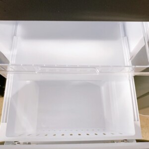 外装には日常使用に伴う軽微な擦れ跡や薄い汚れが見受けられましたが、目立つへこみや大きな傷はありませんでした。庫内は棚板やドアポケット、野菜ケースなどの付属パーツが揃っており、使用感が少なく清潔感のある状態でした。冷却機能や温度調整も正常に動作し、異音や霜付きも見られない良好なコンディションでした。