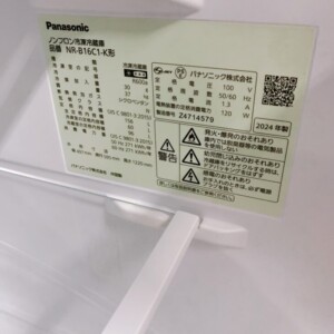 今回は昭島市にお住まいの40代男性・会社員の単身世帯のお客様より、パナソニック ノンフロン冷凍冷蔵庫 NR-B16C1-K(2024年製)を出張買取にてご依頼いただきました。