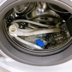 お引き取りした洗濯乾燥機は外装に目立つ傷やヘコミがなく、全体的に非常にきれいな状態でした。ドア周辺や操作パネルの擦れも少なく、内部ドラムも清潔感が保たれていました。給排水ホースや固定部品などの付属品も揃っており、動作確認でも洗浄・乾燥ともに問題なく稼働することを確認しています。