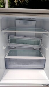 ・トレイや棚板、サイドポケットにはヒビ割れや傷などのダメージなし