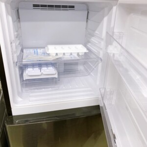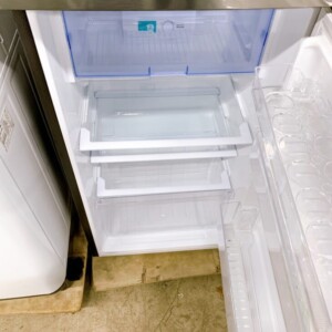 本体外装はステンレス調の扉にわずかな擦れや使用に伴うくすみが見られる程度で、大きな凹みや損傷はありませんでした。庫内は棚やケースの透明度も高く、汚れや臭いの付着も少ない清潔な状態を維持しています。冷却動作、温度調整ともに正常で、日常使用において問題のない良好なコンディションでした。