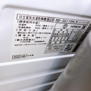 今回は中野区にお住まいの50代夫婦(会社員/持ち家マンション)のお客様より、日立 ドラム式洗濯乾燥機 BD-SG110HL(2022年製)を出張買取にてご依頼いただきました。