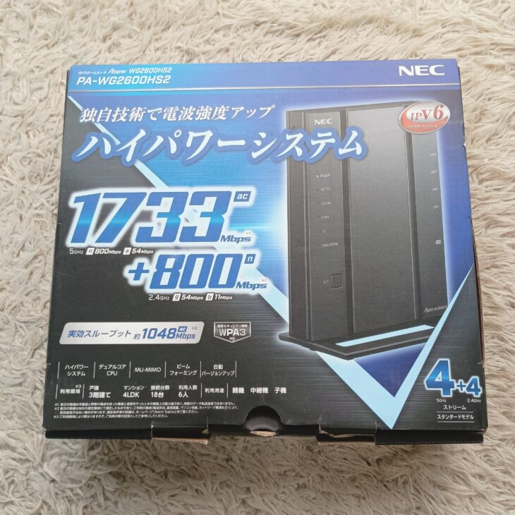 今回は三鷹市にお住まいの40代男性・会社員より、NEC Wi-Fiホームルーター Aterm WG2600HS2(PA-WG2600HS2)を出張買取にてご依頼いただきました。