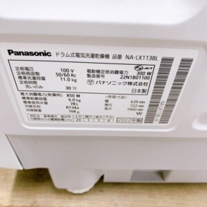 今回は文京区にお住まいの30代男性・会社員(単身世帯・賃貸マンション)より、Panasonic ドラム式洗濯乾燥機 NA-LX113BL(2022年製)を出張買取にてご依頼いただきました。