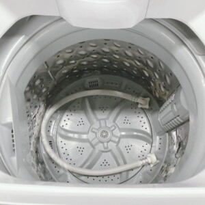 本体外観は大きなキズやへこみもなく、使用に伴う軽微な擦れや薄い汚れが見られる程度でした。洗濯槽内部は清潔感があり、糸くずフィルターや給水ホースなどの付属品も揃っています。動作確認では洗い・すすぎ・脱水すべて正常に作動し、日常使用に問題のないコンディションでした。