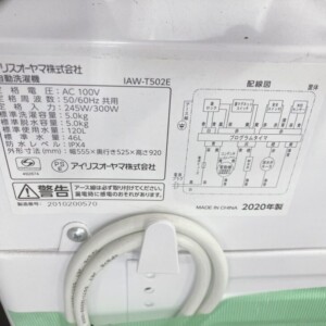 今回は港区浜松町にお住まいの30代男性(会社員・単身世帯・賃貸マンション)より、IRIS OHYAMA 全自動洗濯機 IAW-T502E(2020年製)を出張買取にてご依頼いただきました。