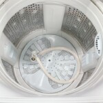 本体外観には日常使用に伴う擦れや小キズ、軽度の汚れが見られましたが、大きなへこみや破損はありませんでした。洗濯槽内部は清潔な状態が保たれており、嫌なニオイやカビの付着も見受けられません。給水・排水ホースも付属しており、動作確認では洗い・すすぎ・脱水ともに問題なく作動しました。外観に使用感はあるものの、実用面では良好な状態でした。