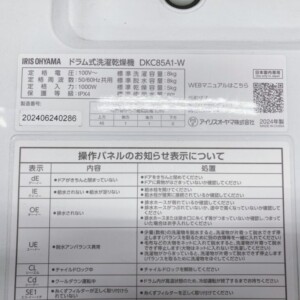 今回は東久留米市にお住まいの50代男性自営業・夫婦世帯・持ち家(マンション)にお住まいのお客様より、アイリスオーヤマ ドラム式洗濯乾燥機 DKC85A1-W(2024年製)の出張買取をご依頼いただきました。