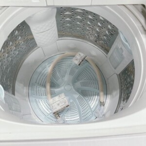 お引き取りした洗濯機は外装に目立つ傷や変色が見られず、全体的に非常にきれいな状態でした。操作パネルの表示も明瞭でボタンの反応も良好です。槽内はステンレス部分の輝きが保たれており、カビや強い臭いの付着は確認されませんでした。給水ホースや糸くずフィルターなどの付属パーツも揃っており、洗浄・脱水動作ともに問題なく作動することを確認しました。