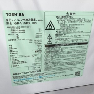 東京都目黒区自由が丘へ 東芝 GR-V15BS(W) ノンフロン冷凍冷蔵庫 2024年製 美品を出張買取しました