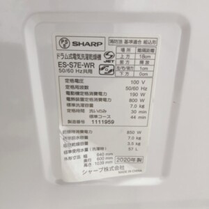今回は小金井市にお住まいの30代ご夫婦より、SHARP ドラム式電気洗濯乾燥機 ES-S7E-WR(2020年製)を出張買取にてご依頼いただきました。洗濯7.0kg・乾燥3.5kgのコンパクトドラム式で、マンションにも設置しやすいサイズ感が特徴のモデルです。