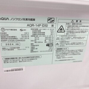 今回は稲城市にお住まいの40代男性・会社員(単身・賃貸マンション)より、AQUA ノンフロン冷凍冷蔵庫 AQR-14P(DS)(2024年製)を出張買取にてご依頼いただきました。