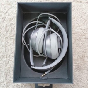 外箱付きでのご依頼でした。ヘッドホン本体はストーン・グレーの限定カラーで、全体的に使用感はあるものの大きな破損はありませんでした。イヤーパッド部分には軽微な擦れが見受けられましたが、音出し・左右バランス・ケーブル接続ともに動作良好でした。