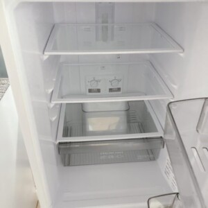 2021年製と比較的新しく、外装はホワイトカラーで大きな凹みや目立つ傷はありませんでした。庫内のガラス棚・ケース類も揃っており、ヒビ割れ等もなし。冷却機能も問題なく、動作確認は良好でした。