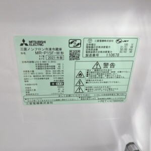 豊島区駒込へ出張買取 三菱 MR-P15F-W 2021年製 冷凍冷蔵庫を査定しました