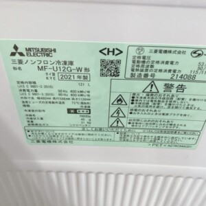 今回は中央区日本橋にお住まいの30代・女性(会社員/単身/賃貸マンション)より、三菱 ノンフロン冷凍庫 MF-U12G-W(2021年製・121L)を出張買取にてご依頼いただきました。