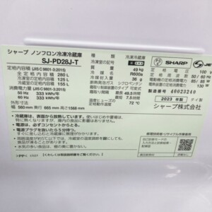 今回は中野区東中野にお住まいの40代男性・会社員(単身・賃貸マンション)のお客様より、SHARP ノンフロン冷凍冷蔵庫 SJ-PD28J-T(2023年製)を出張買取にてご依頼いただきました。