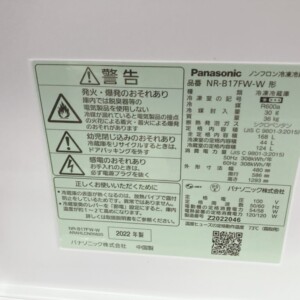 東京都港区麻布十番へ出張買取 Panasonic NR-B17FW-W 2022年製 冷蔵庫 使用感ありのため適正価格で査定しました