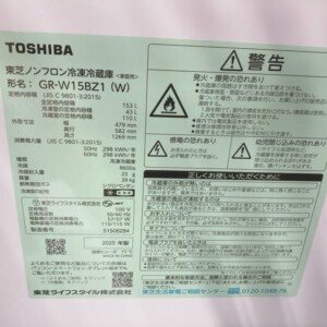 今回は大熊町にお住まいの30代女性・会社員(単身・賃貸マンション)のお客様より、東芝 ノンフロン冷凍冷蔵庫 GR-W15BZ1(153L)の出張買取をご依頼いただきました。