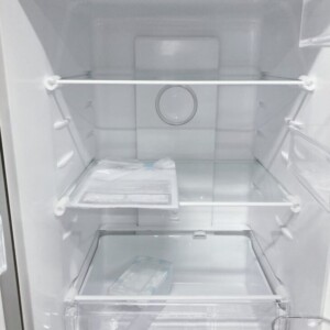 お買取した冷蔵庫は外装には使用に伴う傷や汚れが若干あるものの、庫内は清潔な状態で棚板やドアポケット、冷凍室トレーなどの付属パーツも揃っており、使用期間の短さが感じられるコンディションです。冷却動作や庫内灯の点灯も正常で、安心して再販可能な状態でした。