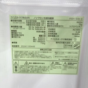 今回は福島県葛尾村にお住まいの40代主婦の方よりアイリスオーヤマノンフロン冷凍冷蔵庫 IRSN-32B-B(2024年製)の出張買取をご依頼いただきました。