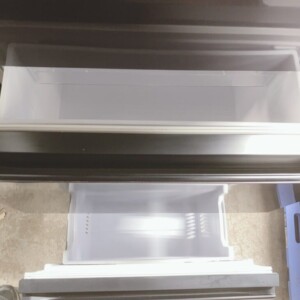 拝見した冷蔵庫は外装に目立つキズやヘコミは見受けられず、光沢のあるブラックカラーも美しい状態を保っていました。庫内は棚板・ドアポケットともに割れや欠けがなく、清潔感のある良好なコンディションでした。取扱説明書も保管されており、使用期間の短さがうかがえる一台です。冷却動作や庫内灯の点灯、ドアの密閉状態も問題ありませんでした。