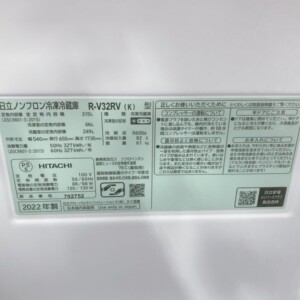 今回は鏡石町にお住まいの50代男性・会社員(夫婦世帯・持ち家一戸建て)のお客様より、日立 ノンフロン冷凍冷蔵庫 R-V32RV(K)(2022年製)を出張買取にてご依頼いただきました。