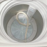 拝見した洗濯機は外装・操作パネルともに目立つ傷や変色が少なく、全体的に清潔感のある状態でした。ガラストップのフタ部分も透明感が保たれており、槽内のステンレス部分にもサビや強い汚れは見られません。糸くずフィルターや給水ホースも揃っており、日常使用に伴う軽微な使用感はあるものの丁寧に使用されていたことが分かるコンディションでした。