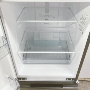 お引き取りした冷蔵庫は外観に目立つキズやへこみがなく、落ち着いたメタリックカラーの外装も良好な状態でした。庫内は棚板・ドアポケット・野菜ケースともに破損がなく、汚れやニオイの付着も少ない清潔なコンディションを保っていました。冷却機能や温度調整も正常に動作しており、使用期間の短さがうかがえる状態でした。