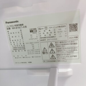 今回は磐梯町にお住まいの30代女性・会社員(単身世帯/賃貸アパート)のお客様より、Panasonic ノンフロン冷凍冷蔵庫 NR-B16C1-K(2024年製)を出張買取にてご依頼いただきました。
