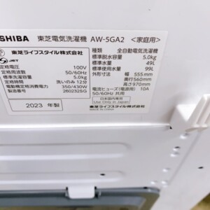 福島県柳津町で東芝 全自動電気洗濯機 AW-5GA2(2023年製)を出張買取しました|使用感少なく良好な状態