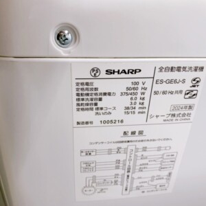 福島県矢祭町へSHARP 全自動電気洗濯機 ES-GE6J-S(2024年製)を出張買取|使用感少ない美品を査定しました