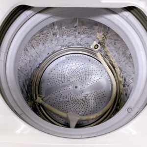 拝見した洗濯乾燥機は、外装に目立つ傷やへこみはなく、全体的に清潔感のある良好な状態でした。洗濯槽内部も汚れやカビの付着が少なく、排水ホースや給水ホースも揃っており、動作確認でも洗い・脱水・乾燥機能すべて問題なく作動しました。使用期間が比較的短く、大切に使われていたことがうかがえるコンディションでした。