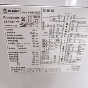 福井県永平寺町でSHARP 電気洗濯乾燥機 ES-PX8F-W(2022年製)を出張買取|使用感の少ない美品のため適正価格で査定しました